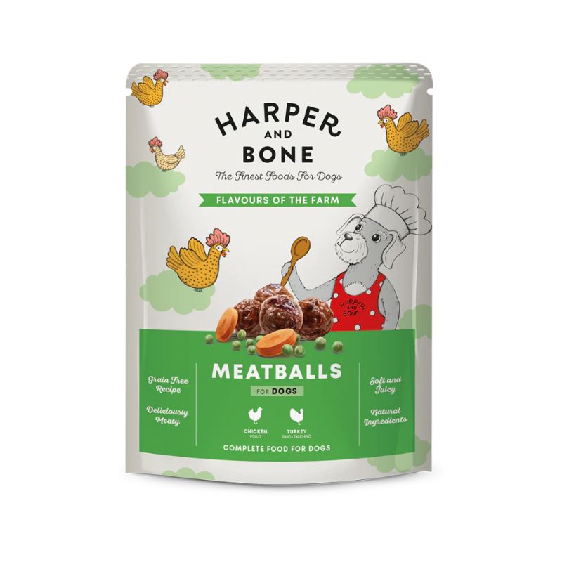 ¿Tu perro se aburre de la misma comida? ¡Pues hoy es su día de suerte! Te presentamos nuestras albóndigas para perros Flavours of the Farm de Harper & Bone, una auténtica delicia diseñada especialmente para tu mejor amigo.